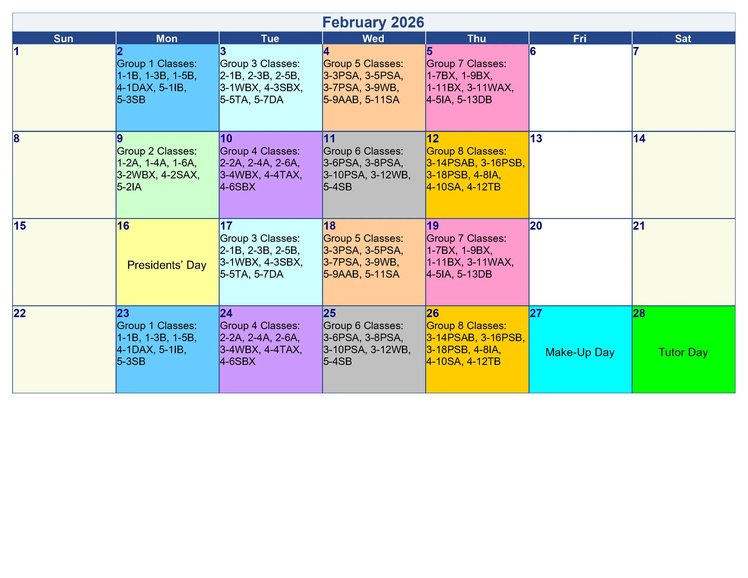 Spring 2026 - Day Calendar
